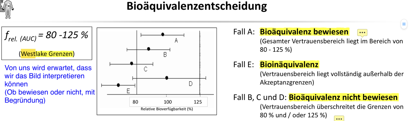 Für die Entscheidung Bioäquivalenz nicht bewiesen gibt es 2 Gründe: