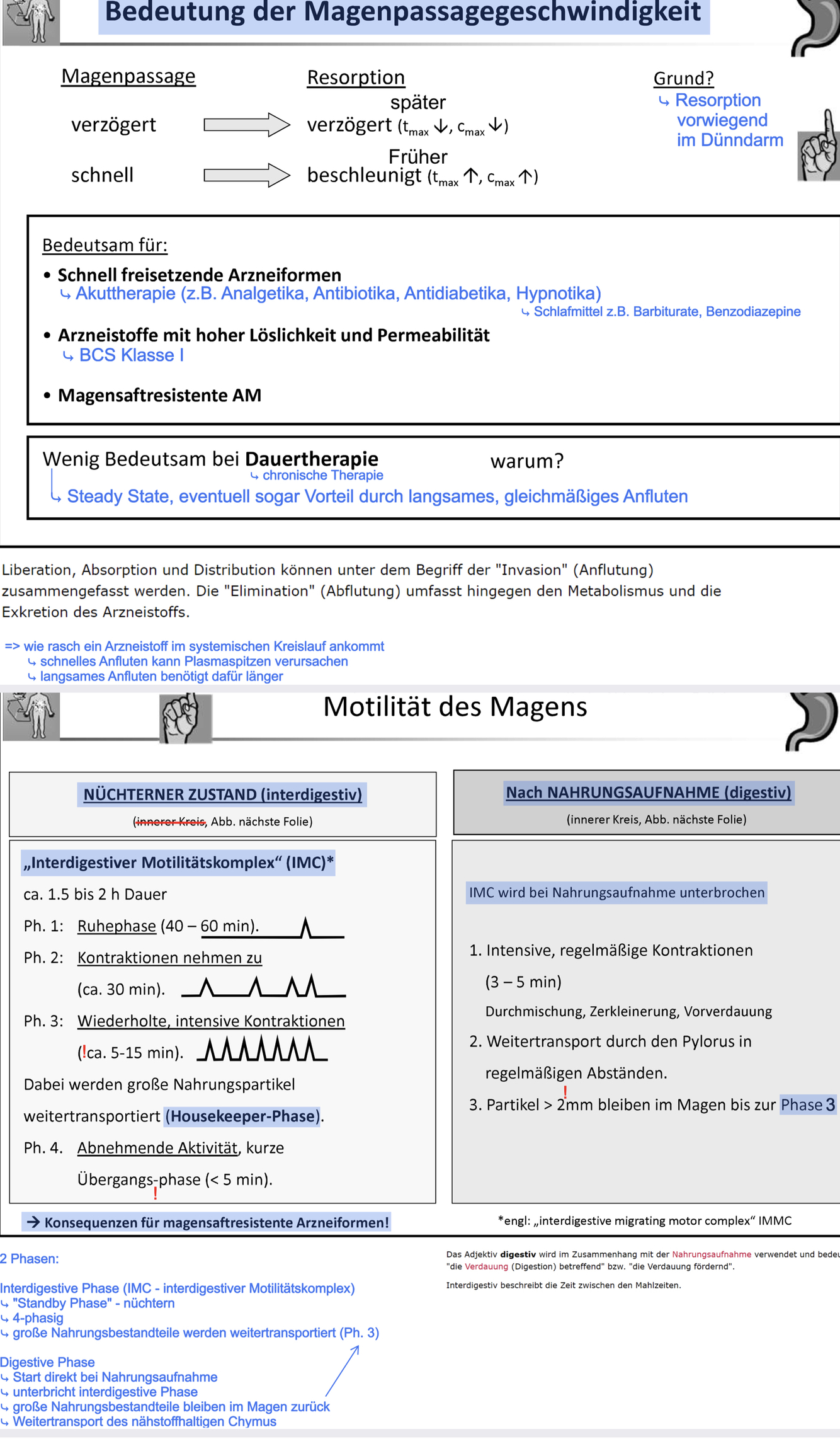 Motilität nüchtern und nach dem Essen beschreiben und bezug auf schnell freisetzende AM, mit magensaftres. Überzogene AM, und retard AM
