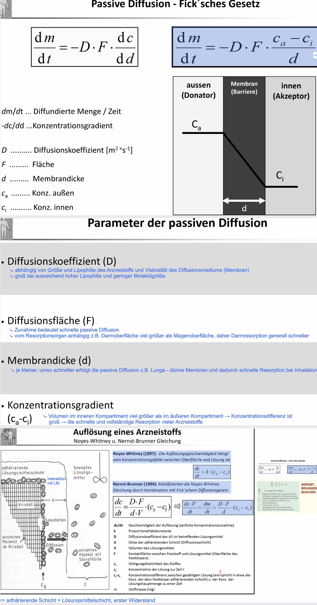 Noyes-Whitney Gleichung wurde modifiziert und mit Fick’schem Gesetz kombiniert LM bildet Solvat-Hülle um Stoff, der durch diese diffundieren muss -> Solvatationsenergie notwendi