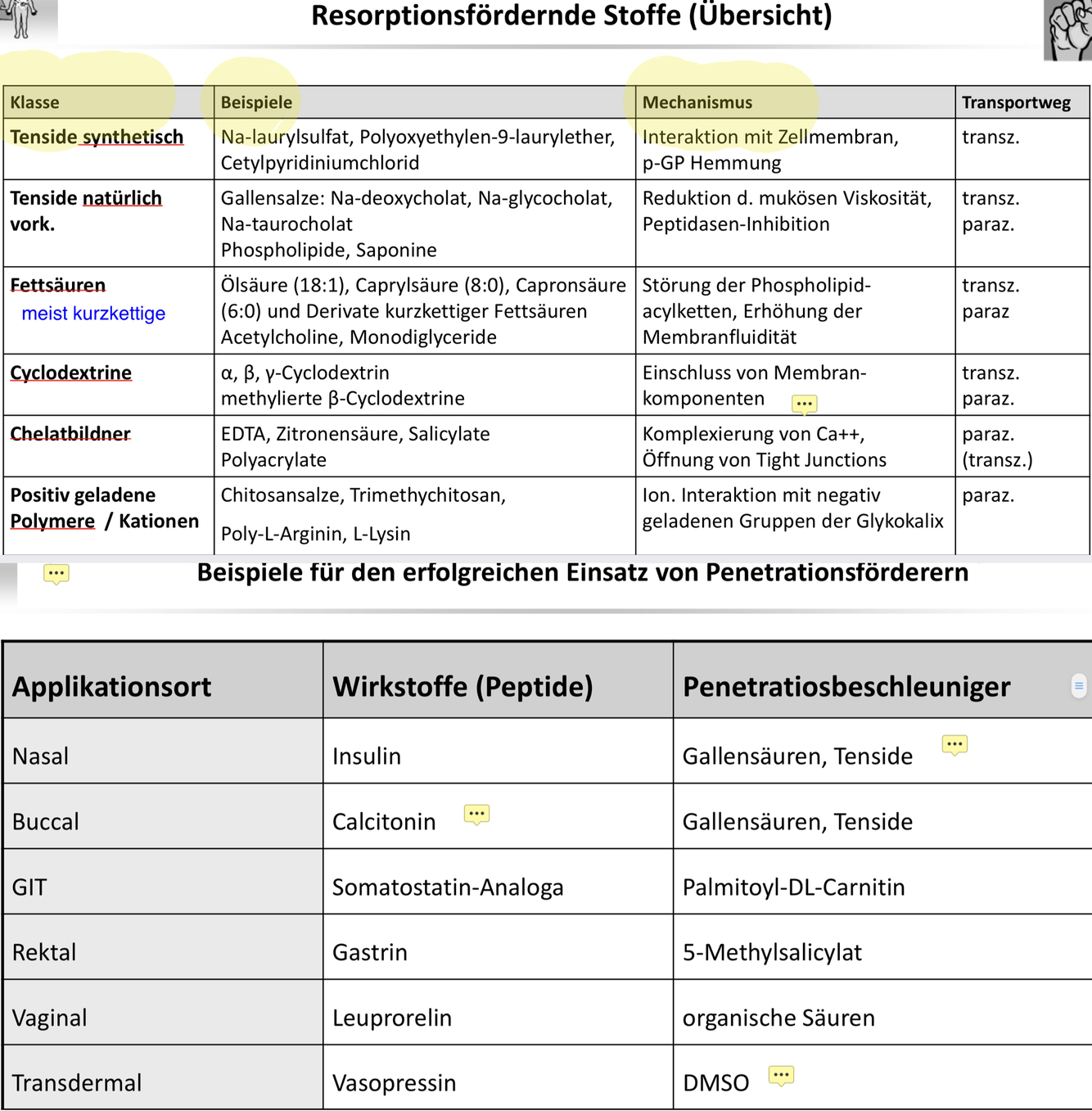 Resorptionsfördernde Stoffe, Beispiele, wie funktionieren sie ( Klasse, Mechanismus, Transportweg)