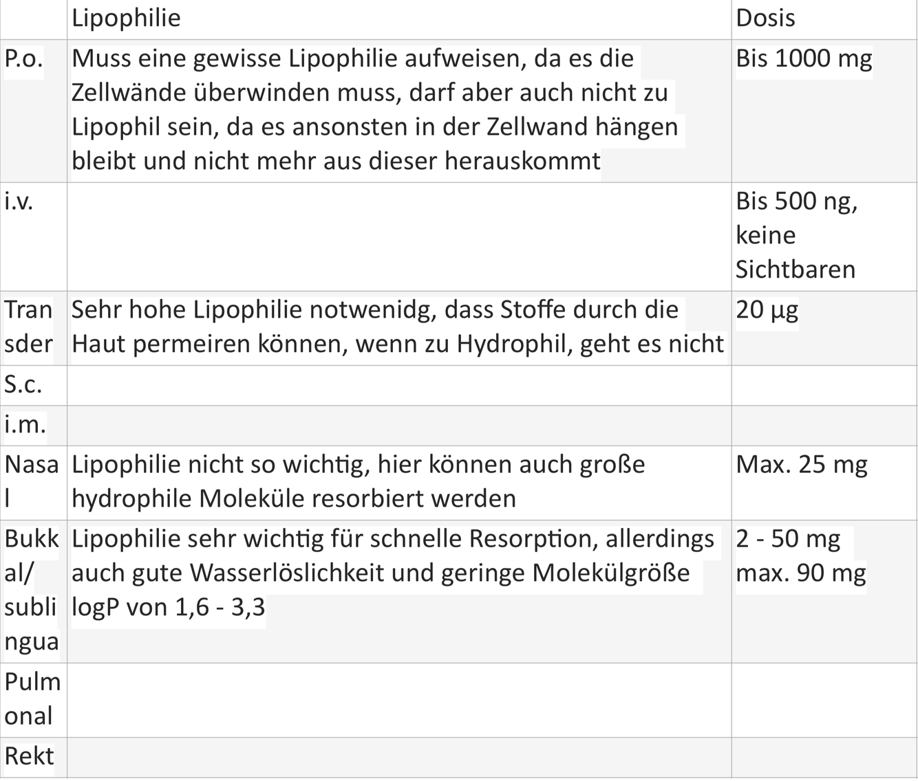 . Grenzen von Lipophilie und Dosis alle Applikationsorte vergleichen