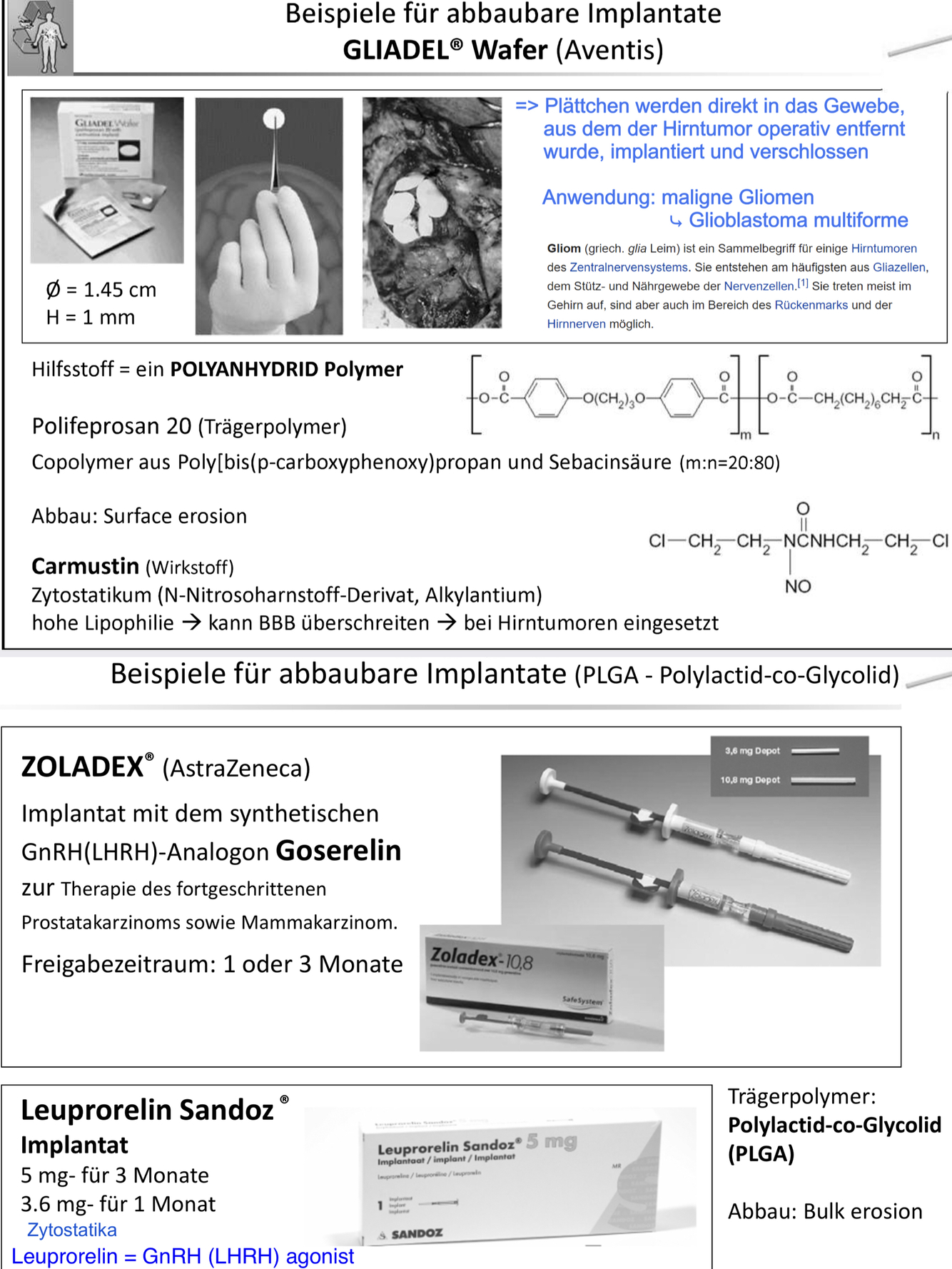 › Polymere: Poly(D,L-lactid-co-glykolid), Polyanhydrid, Polyorthoester