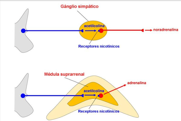 * La …. es liberado en el tallo cerebral (SNC) y en la mayoría de las terminaciones posganglionares simpáticas (SNP).