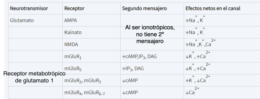 * Ionotrópicos: AMPA, Kainato y NMDA