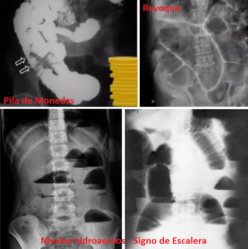* Signo de Revoque (engrosamiento de paredes intestinales)