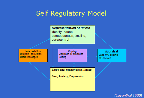 The illness representations formed by the patient initiate a coping response to deal with the situation and then appraisal to decide whether or not the coping response was effective.