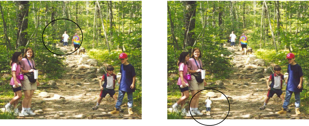 [E.g. in the photo the man in the white shirt appears a normal size but if we placed him next to the woman in the pink shirt we can see he is actually of much smaller retinal size]