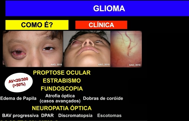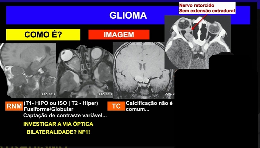 Lesão fusiforme na topografia do nervo óptico com a tomografia mostrando ausência de calcificação? Devemos lembrar do glioma de nervo óptico