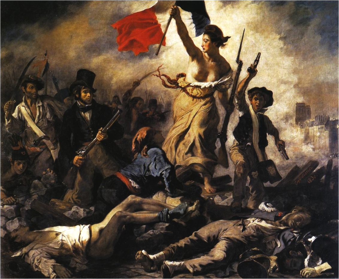 Eugène Delacroix, Liberty Leading the People (1830) Upward pyramid shape. Self-portrait