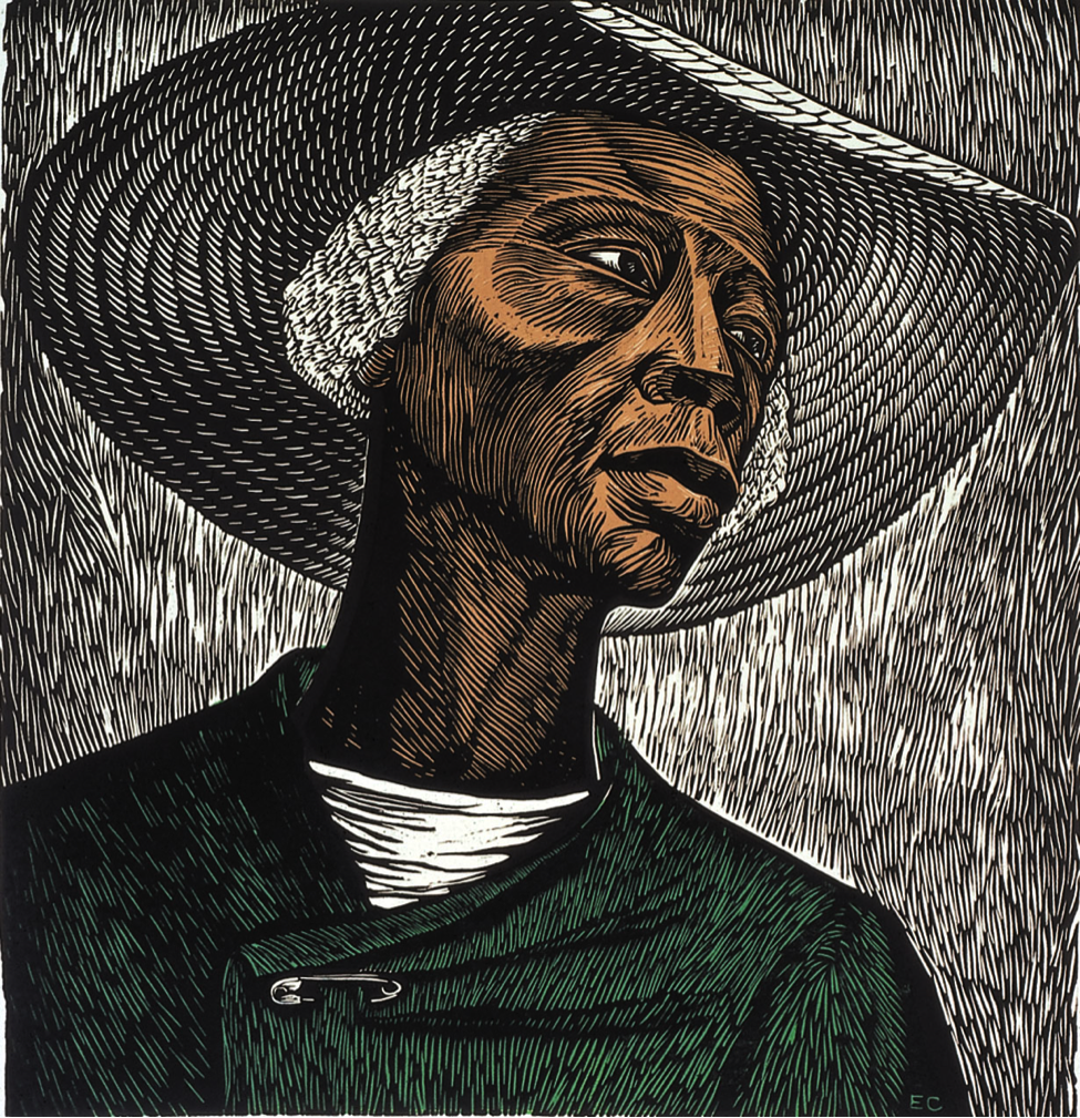Elizabeth Catlett, Sharecropper (1968) Color Linocut. Lived in Cuernavaca Mexico