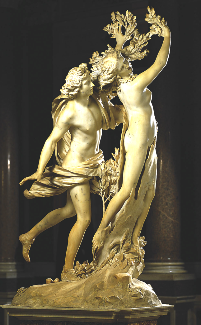 Gianlorenzo Bernini, Apollo and Daphne (1622–1624). Marble. 7’6”. Implied motion, diagonal lines.