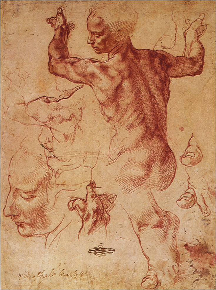 Michelangelo, Studies for The Libyan Sybil, 1510-11. Red Chalk