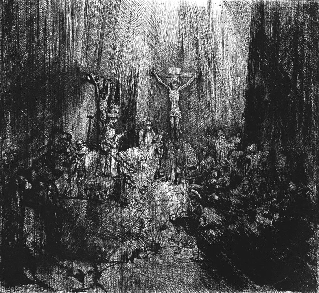 Rembrandt, Christ Crucified Between the Two Thieves (1653). Drypoint.