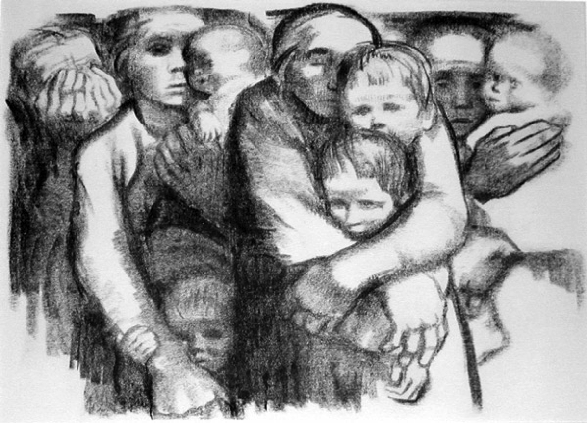 Käthe Kollwitz, The Mothers, (1919). Lithograph. Many of her works depict the grief and suffering of mothers and children