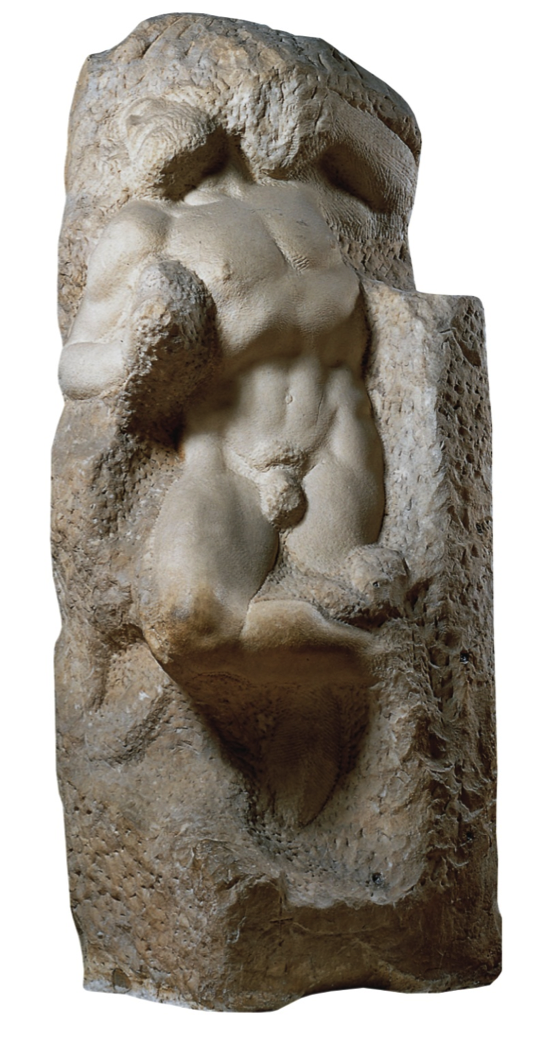 Michelangelo, The Crossed-Legged Captive (1530-34). Marble. Carving.