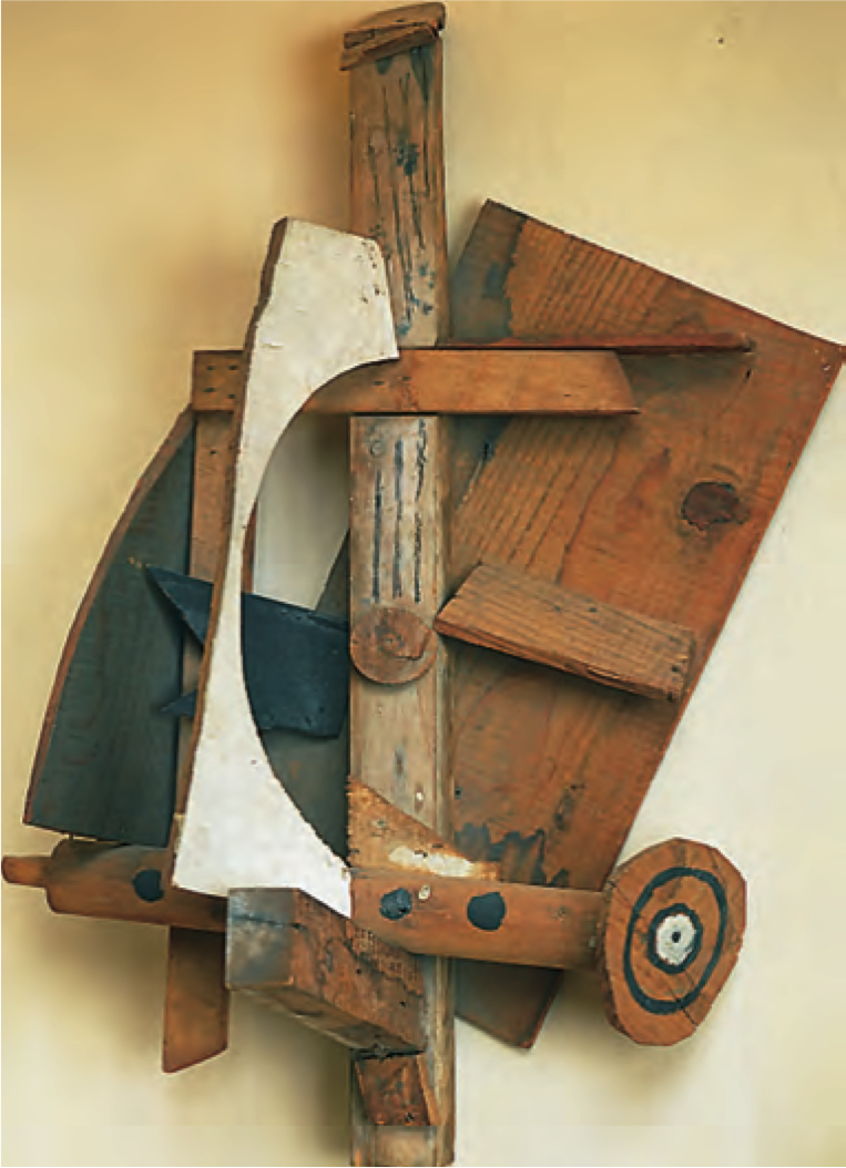 Pablo Picasso. Mandolin and Clarinet (1913). Wood construction and paint. Made from found pieces of scrap, which would have a link or a memory for the artist.
