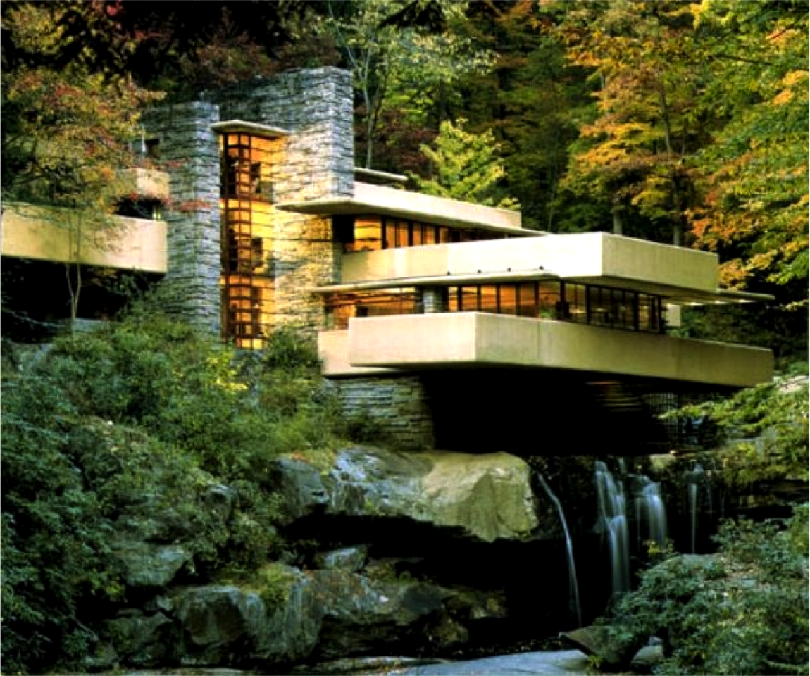 Frank Lloyd Wright, Kaufmann House (“Fallingwater”), Bear Run, PA (1936). Reinforced Concrete Architecture. This house is the paradigm of organic architecture, where a building becomes an integral part of its natural setting