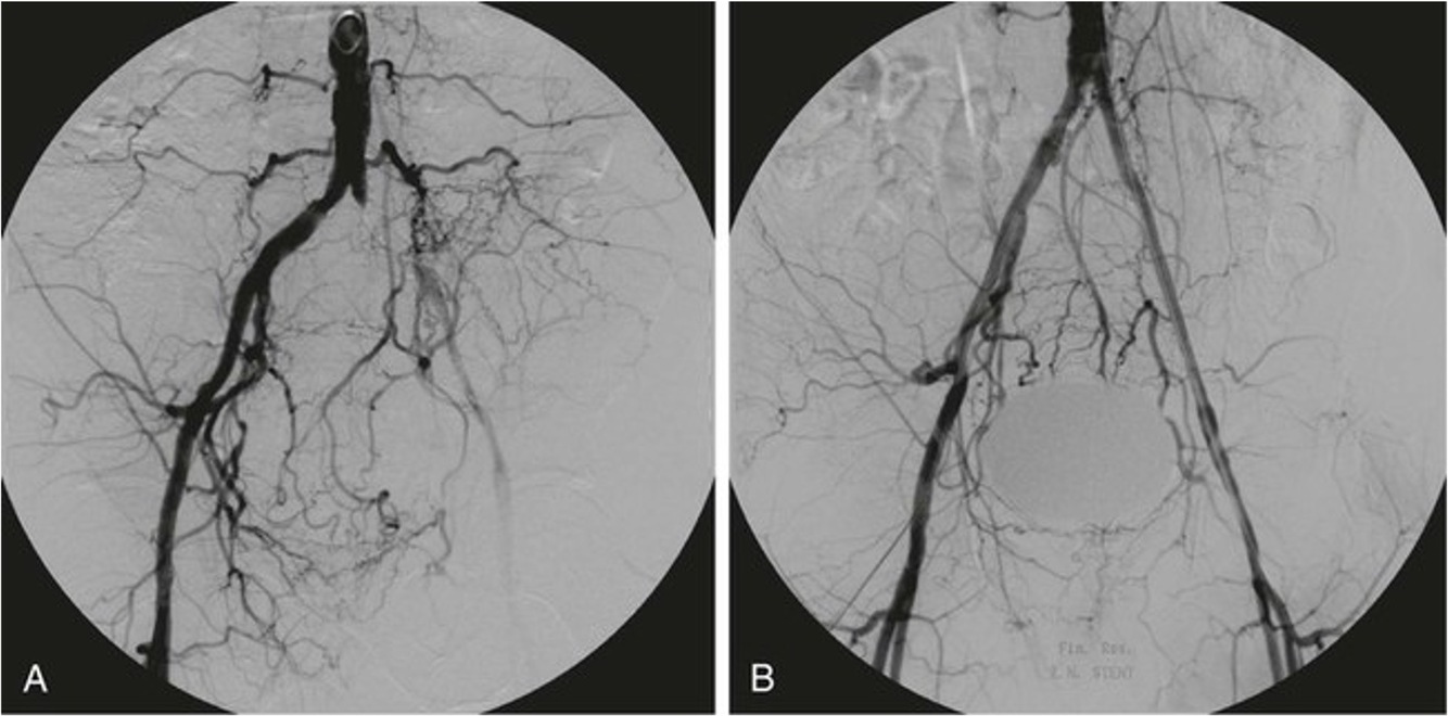 Digital subtraction angiography showing occlusion of left common iliac artery
