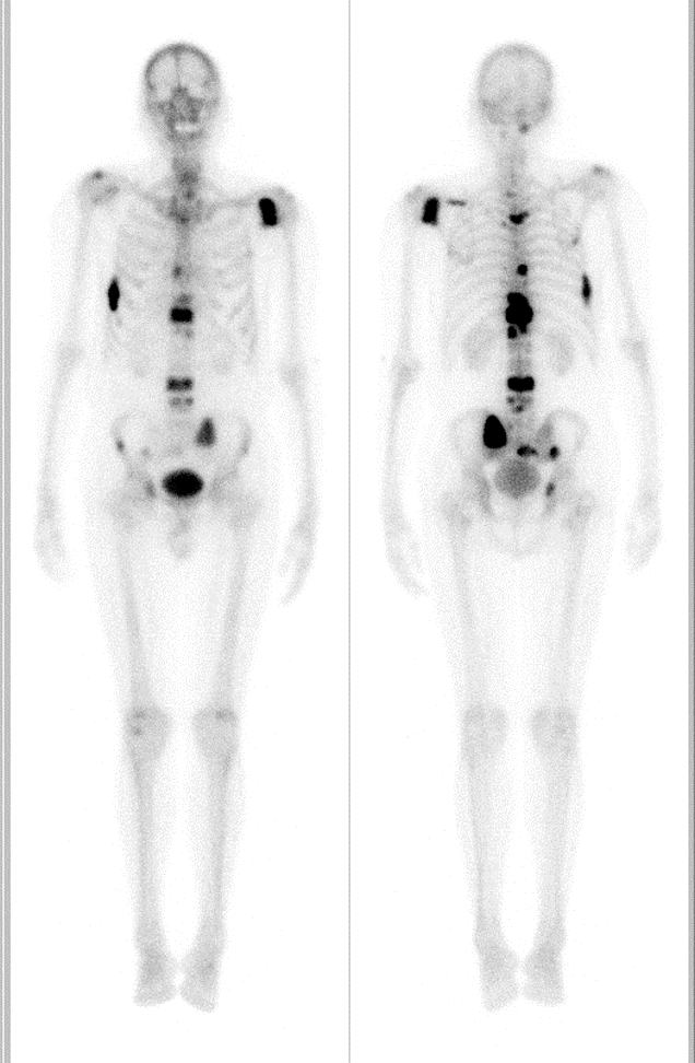 Radioisotope bone scan showing metastases
