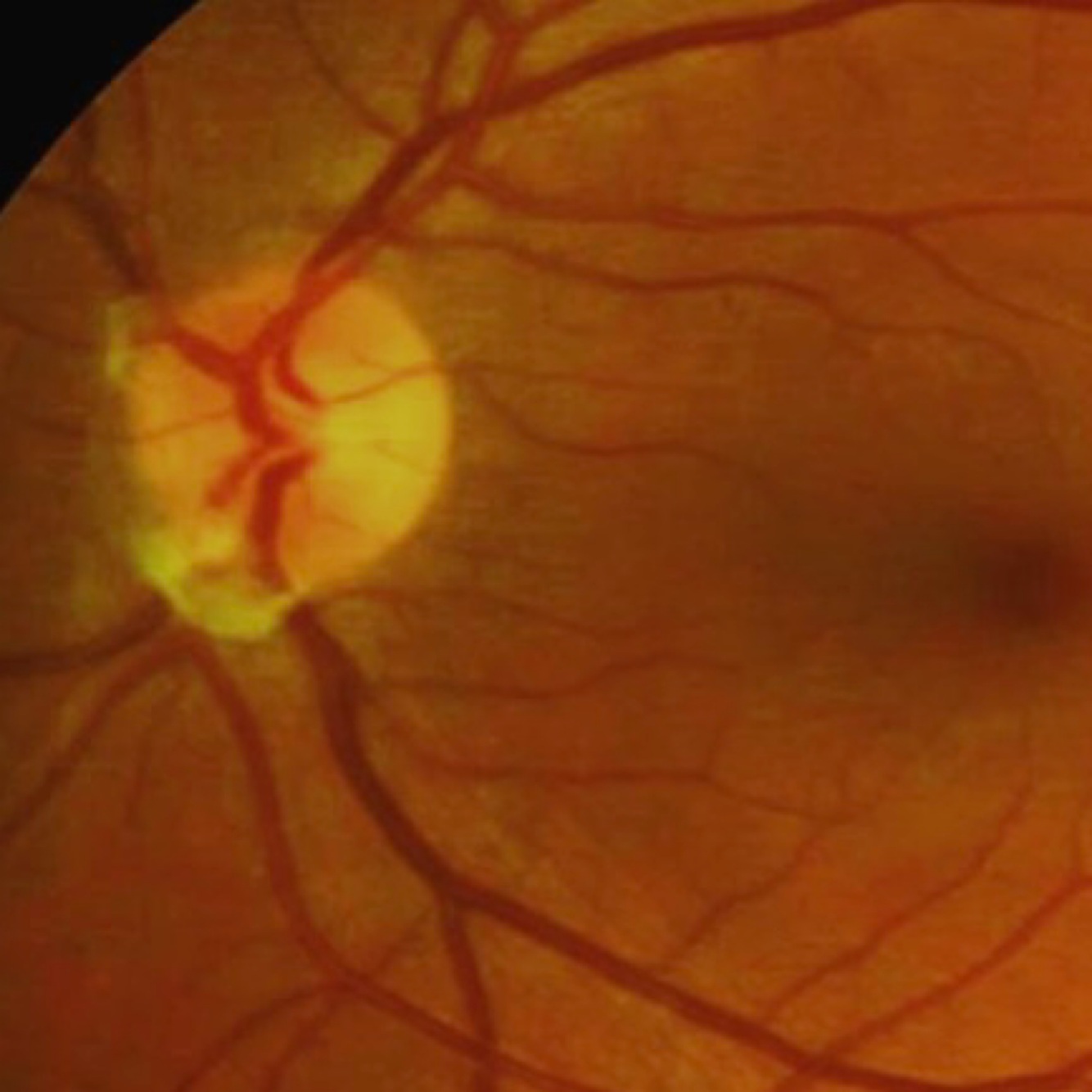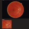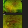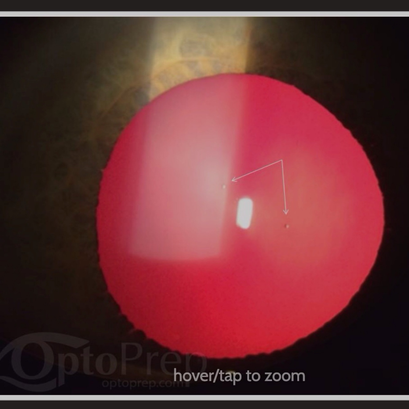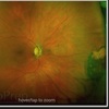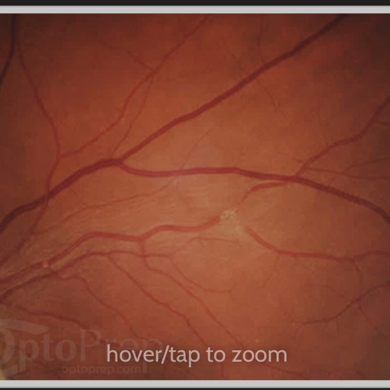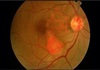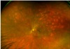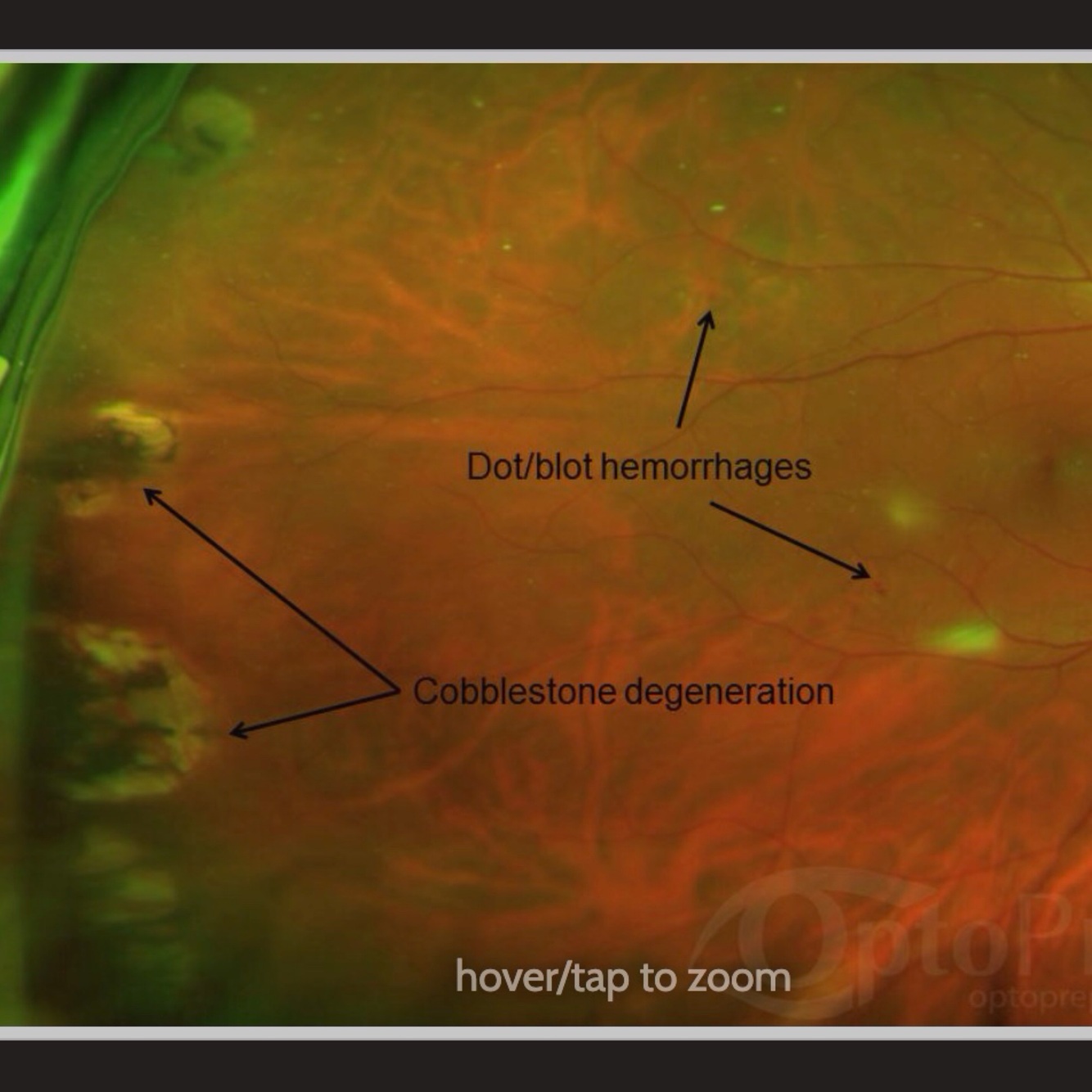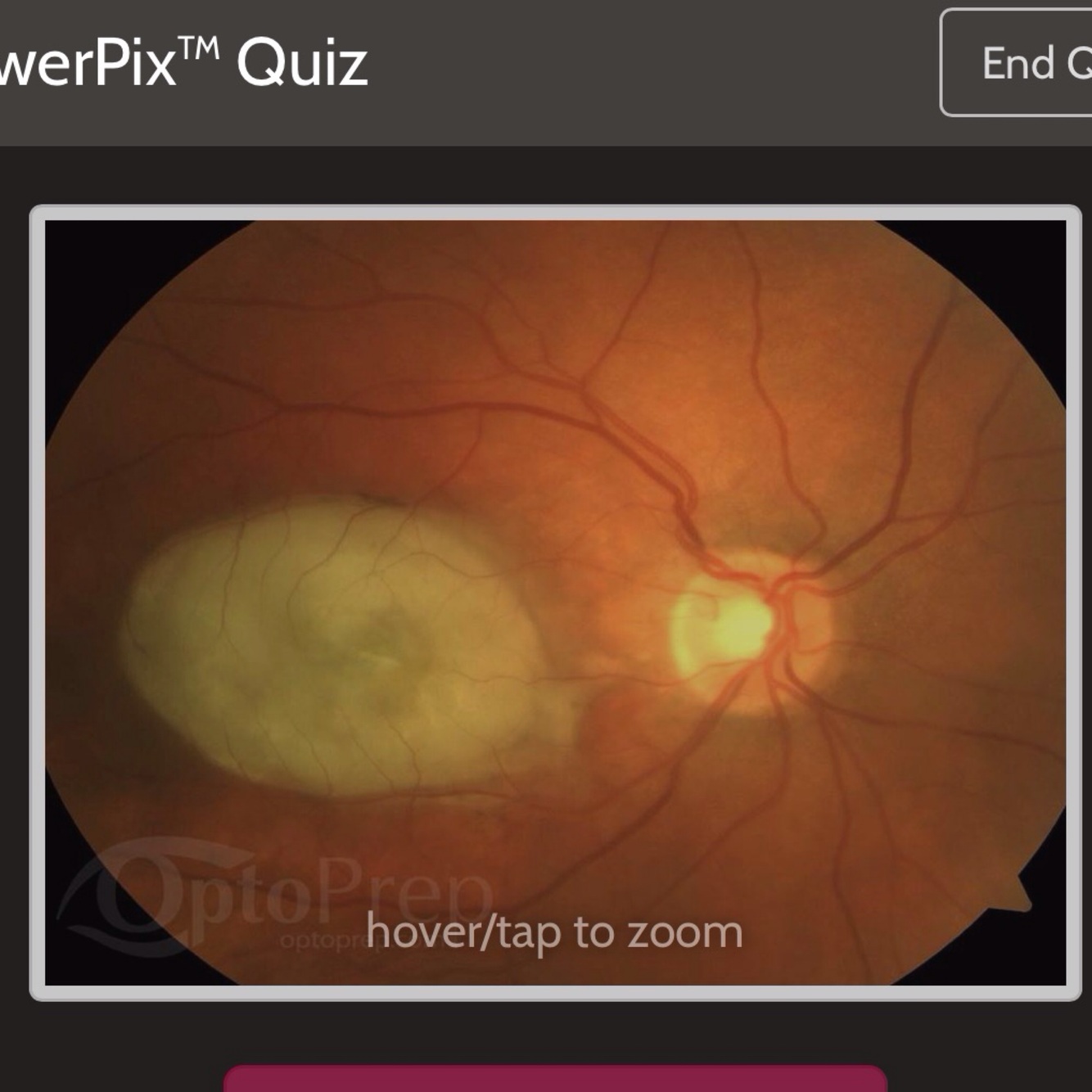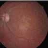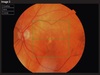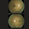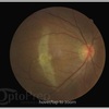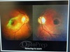** window defect, appears as yellow-white. Well demarcated circular lesion present in mid-peripheral retina