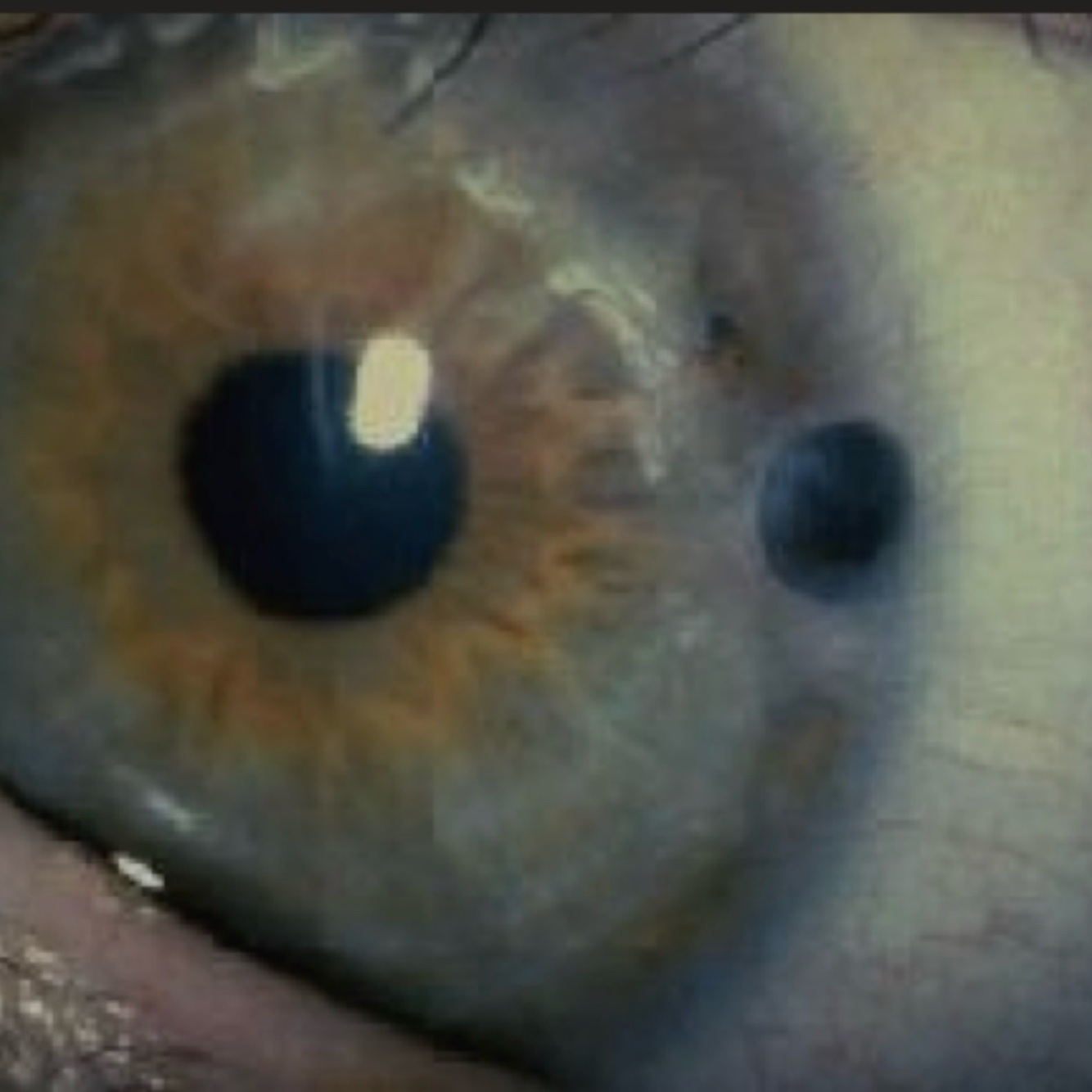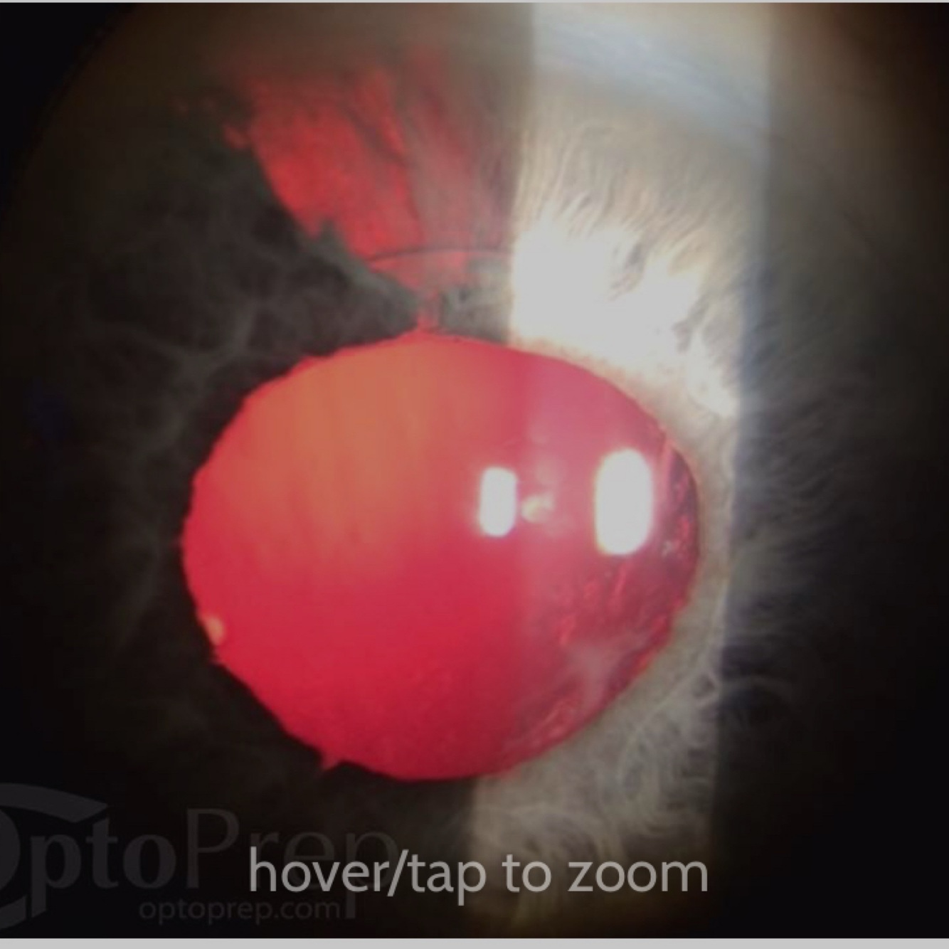 Transillumination defects seen in patient with tyrosinase-negative albinism