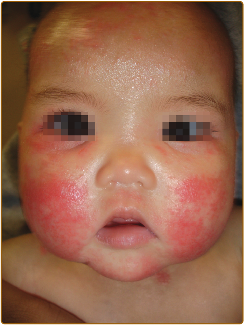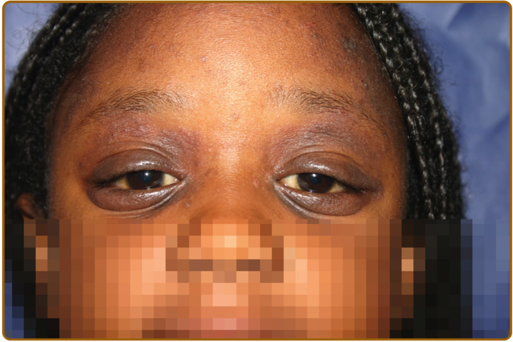 •Child also has edematous, erythematous eyelids with hyperpigmentation and lichenification