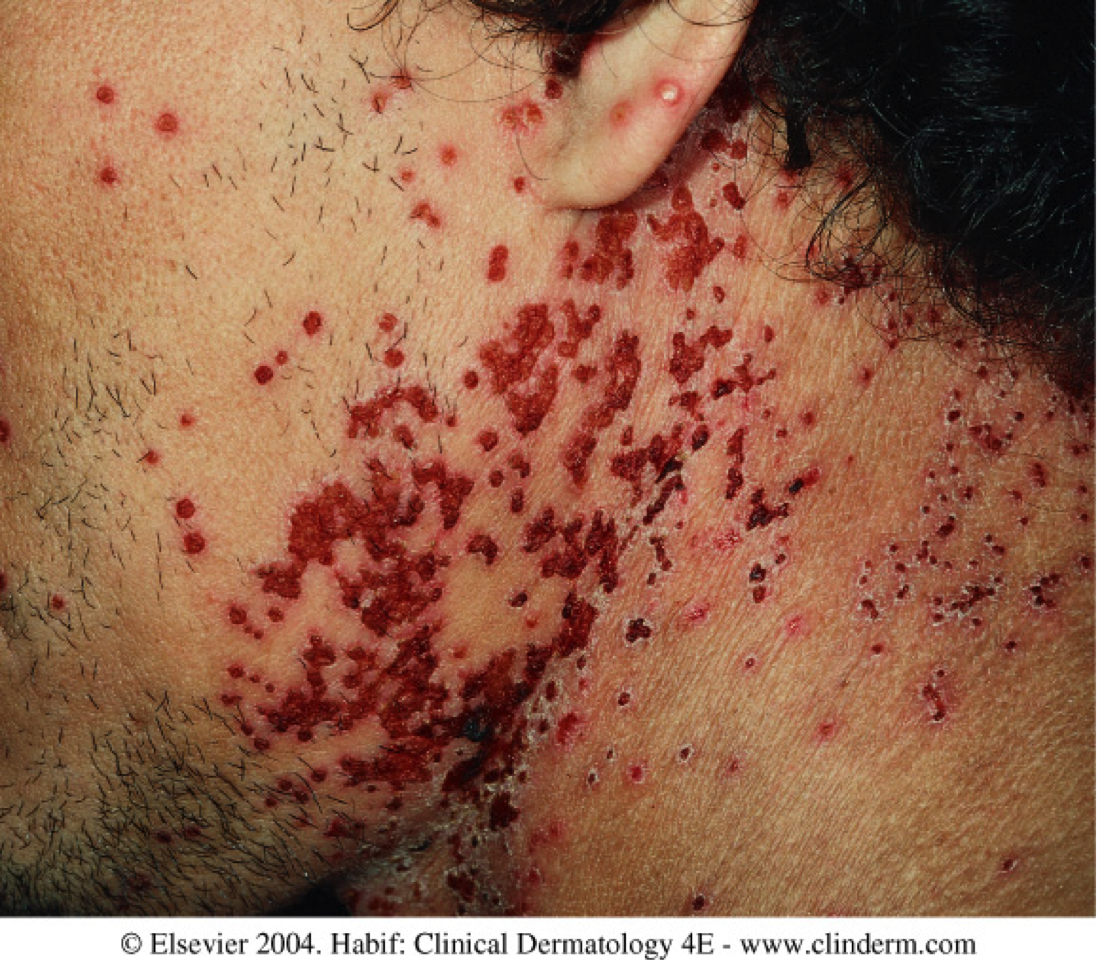 •Oozing, crust and scale may also be present