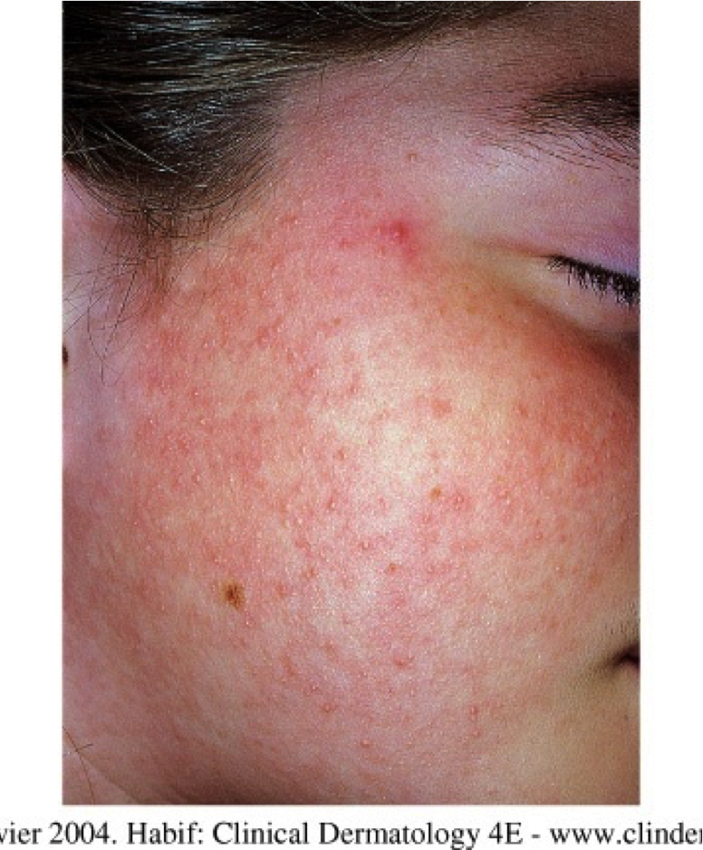 Confluent erythematous papules on the cheeks