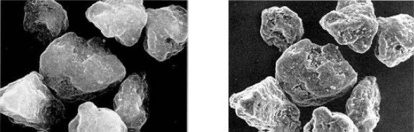 Sample on left seems to have been air dried because the cells are collapsed due to liquid/gas boundary. Sample on right was likely prepared with a crtical point drying method like rapid freezing to avoid water/vapour boundary (image).