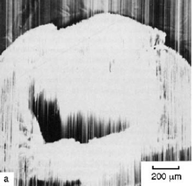 The following image was captured with an SEM. What is the likely cause of the dark region and how can we avoid it?