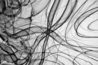 The following TEM artifact was discovered upon inspection of the image. What are the lines and how do they arise?