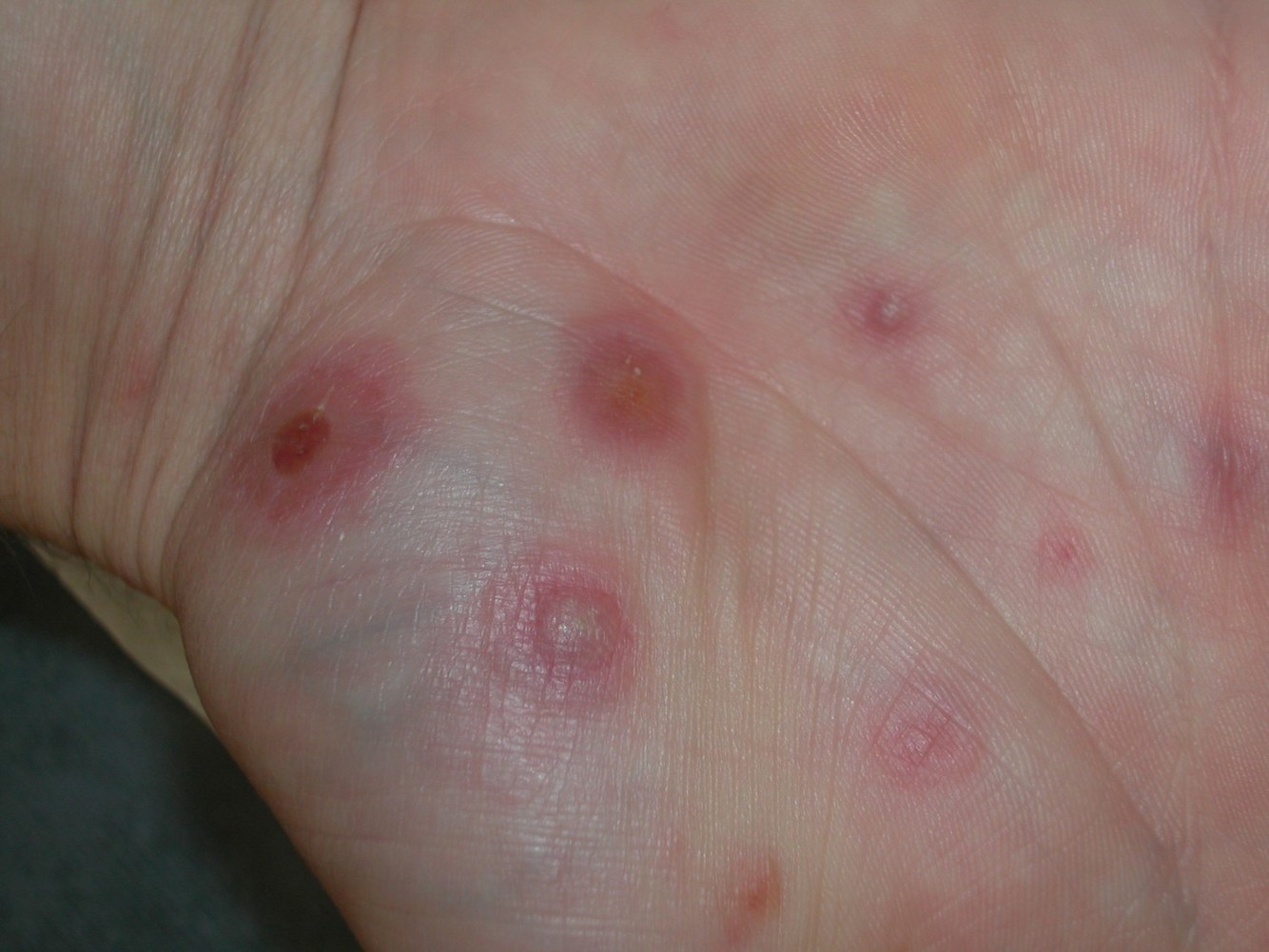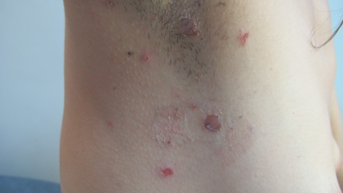 lésion de la face interne de cuisse, ressemblait à de l’urticaire au départ, très prurigineuse. Signe de Nikolsky négatif, qu’est ce que c’est ?
