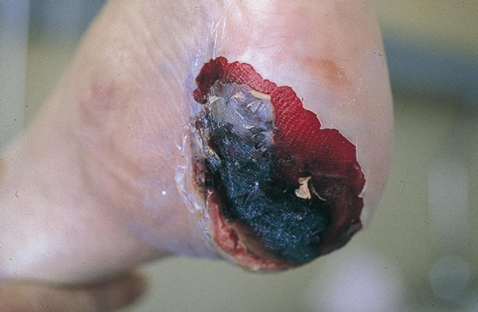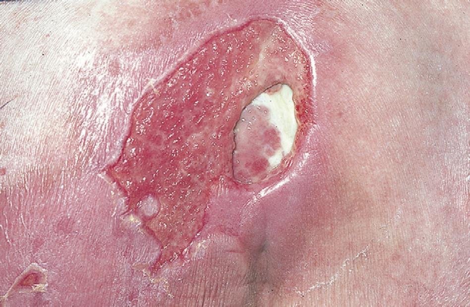 stade III car ulcération marquée du tissu sous cutané sans atteinte du fascia