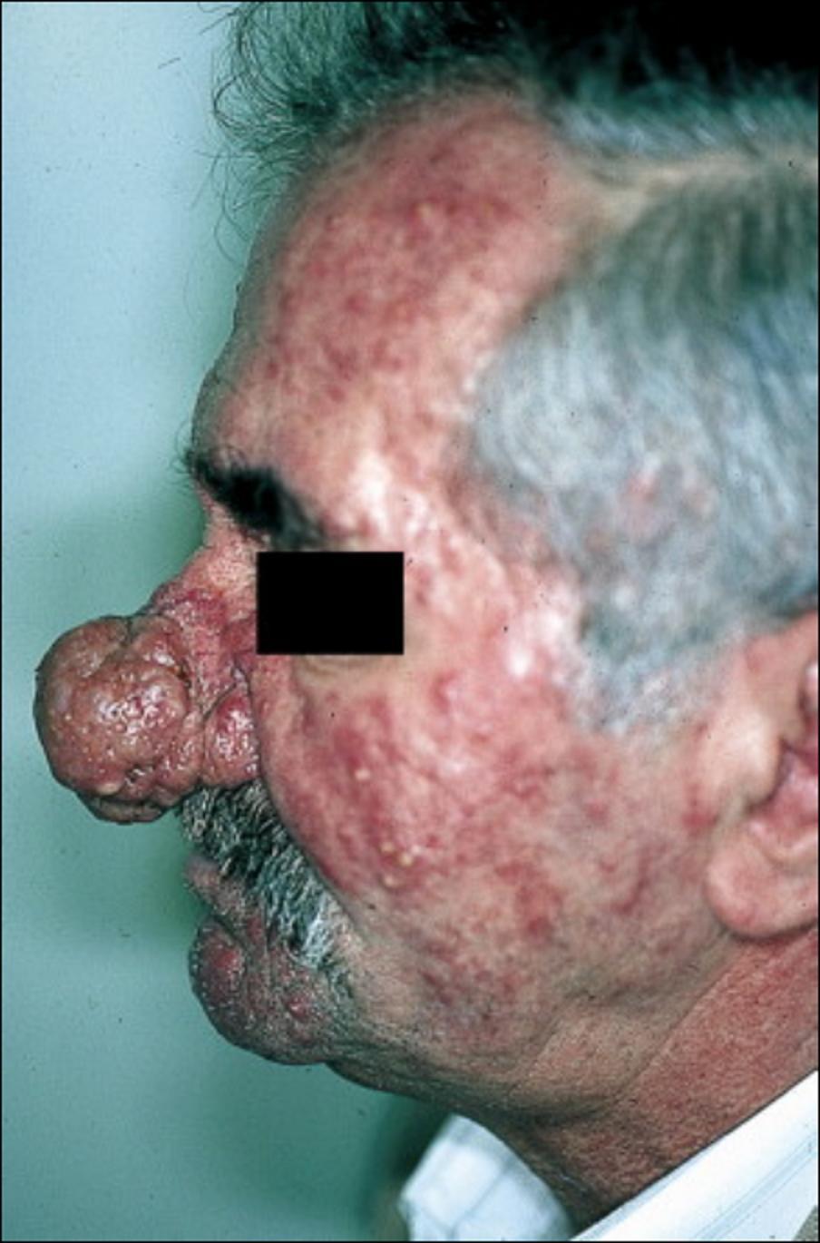 rosacé stade IV: Rhinophyma. Prédominance masculine