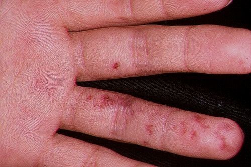 Erythème palmo-plantaire de Janeway