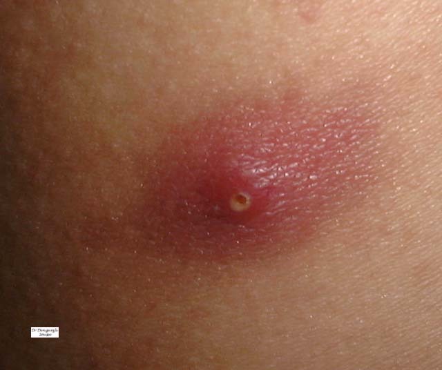 Furoncle avec une zone nécrotique: c’est un bourbillon