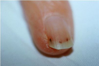 Hémorragies sous-unguéales en flammèche. Endocardite infectieuse et hyperéosinophilie