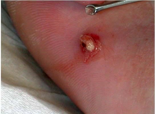 Probable myiase. Le patient aurait du repasser son linge au fer chaud s’il l’avait laisser sécher au soleil