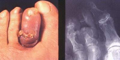 Ostéite du 2e orteil. Fistule pathognomonique