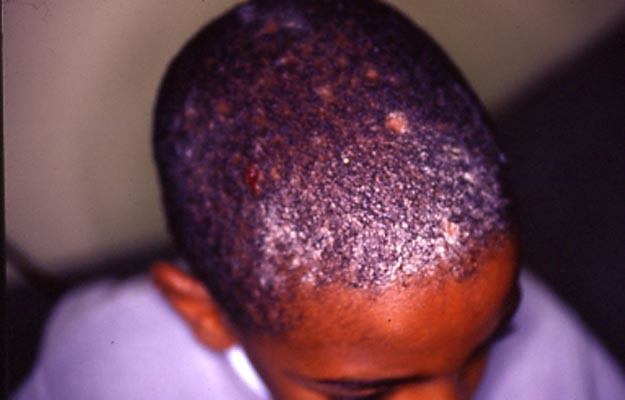 Teigne trichophytique car petites plaques. Serait négatif à la lampe de Wood