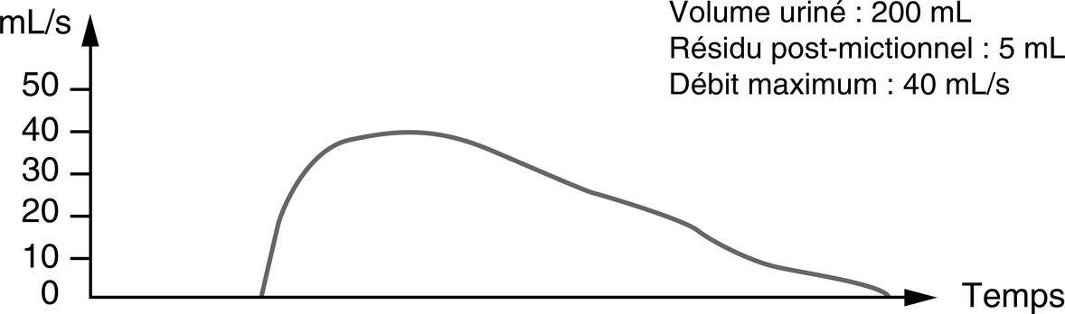 Débitmétrie normale, courbe en cloche, petit résidu post-mictionnel