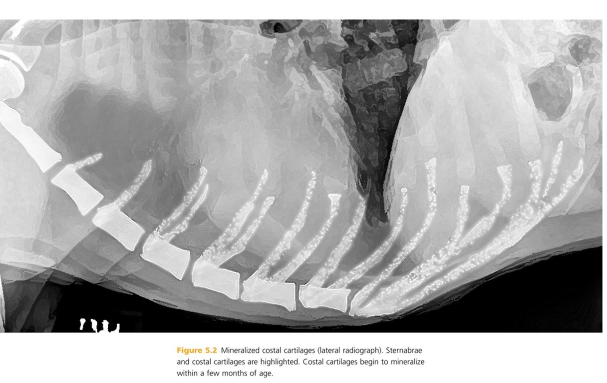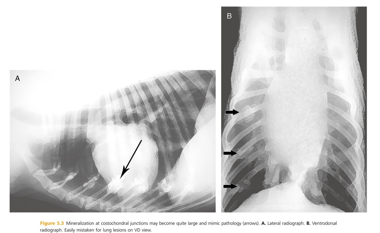 Mineralization at costochondral junctions may become quite large (especailly in ____________ and ____ large breed dogs.