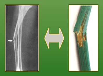 Greenstick fracture: incomplete fracture of long bones usually seen in young children < 10 years age