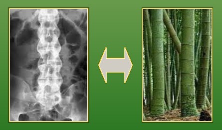 Bamboo sign: vertebral body fusion by marginal syndesmophytes resembling a bamboo stem on AP spinal radiographs, typically seen in ankylosing spondylitis