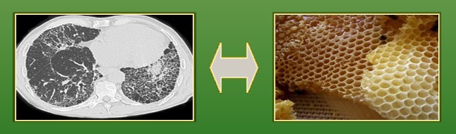 Honey comb sign: reffers to CT manifestation of diffuse pumonary sclerosis (usual in interstitial pneumonia)