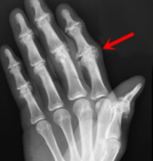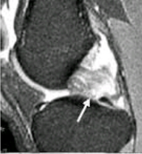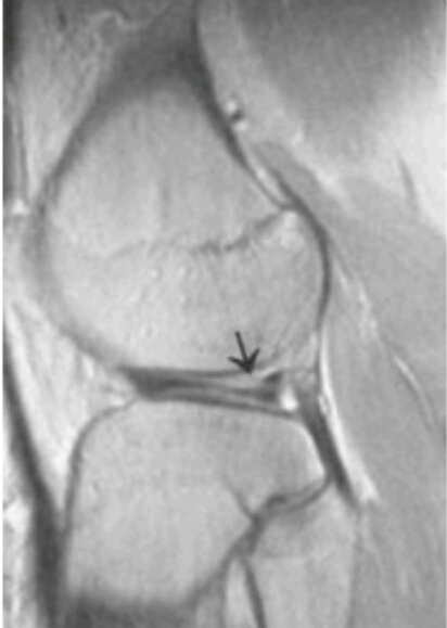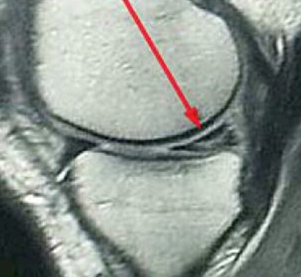 Name the feature the red arrow is pointing at. What disease does this correlate with?