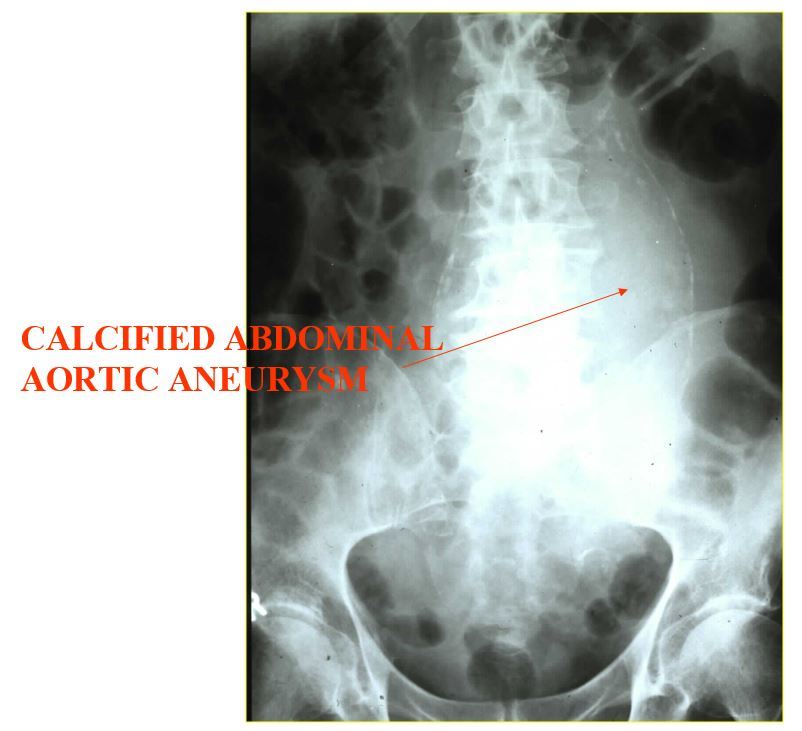 Thus my primary differential is a calcified fusiform abdominal aortic aneurysm.