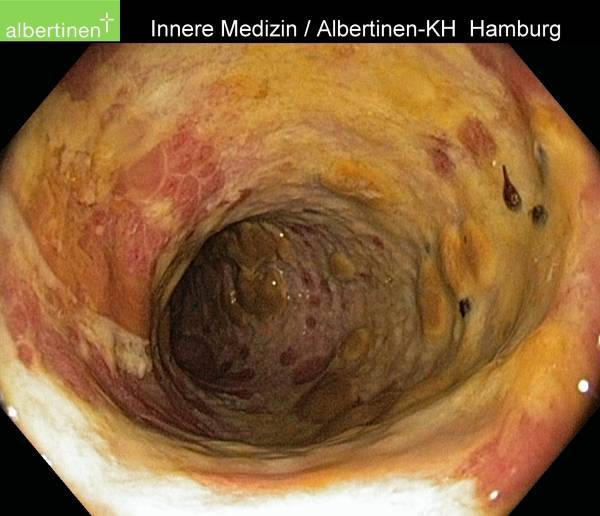 Coloscopie pour diarrhée glaireuse chez un patient ayant eu une antibiothérapie récente, qu’est ce que c’est?