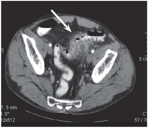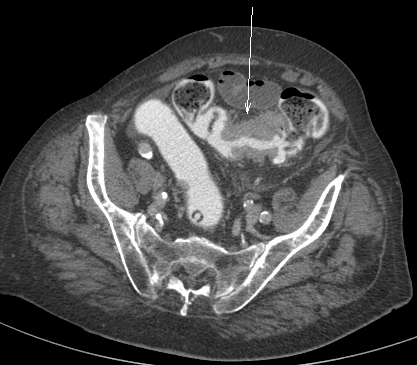 Homme 50 ans, violentes douleurs abdominales et syndrome occlusif, un TDM est réalisé. Diagnostic?