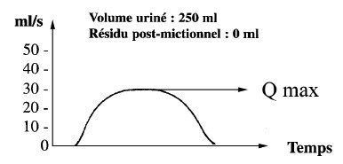 Débitmétrie normale, courbe en cloche, petit résidu post-mictionnel